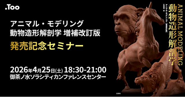 クリエイティブ市場の総合商社・株式会社Too(本社/東京都港区虎ノ門3-4-7、社長/石井剛太、以下Too)は、ハリウッドにて、キャラクタークリエイター、彫刻家ならびに映画監督として活躍中の片桐裕司氏が執筆された『アニマル・モデリング 動物造形解剖学 増補改訂版』の出版を記念し、発売記念セミナーを開催します。