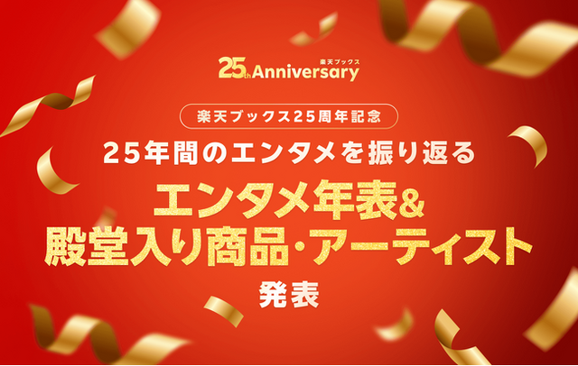 楽天グループ株式会社が運営するオンライン書店「楽天ブックス」は、2026年4月1日(水)にサービス開始から25周年を迎えたことを記念して、25年分の「エンタメ年表」および「殿堂入り商品・アーティスト」を本日発表しました。