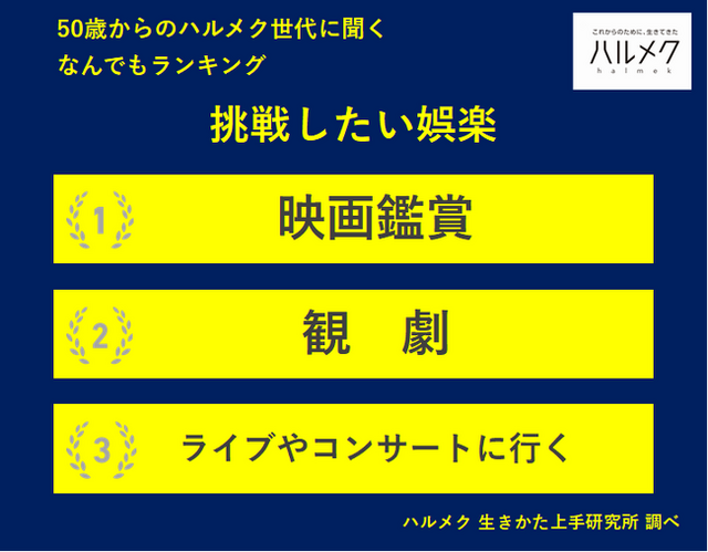 販売部数No.1(※1)雑誌「ハルメク」などのマーケティングやリサーチのコンサルティングを通じて、50代以上のインサイトを日々探求する「ハルメク 生きかた上手研究所」は、50歳以上の女性(事前調査588名、本調査519名)へのアンケート結果をもとにした「50歳からのハルメク世代に聞く なんでもランキング」を公開しました。テーマは「挑戦したい娯楽」です。