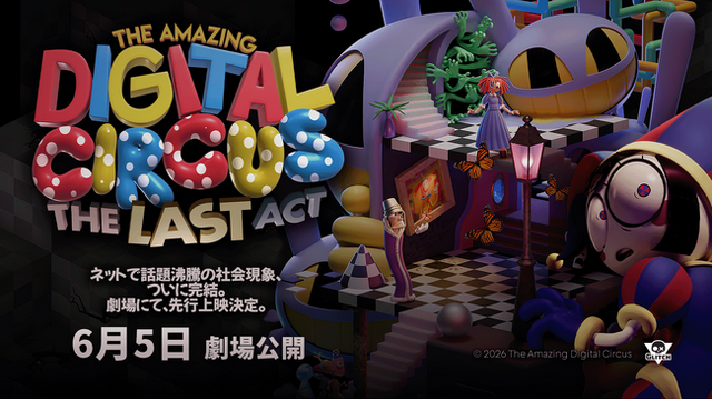 エンターテインメント関連商品を輸入・製造販売するインフォレンズ株式会社(本社:東京都中央区、代表取締役CEO:安川 洋)は、世界的に人気を博すアニメーション作品「The Amazing Digital Circus(アメイジング デジタル サーカス)」のFinal Episodeについて、日本時間6月20日公開予定のの公式公開に先駆けて、2026年6月5日(金)に丸の内ピカデリーにて先行上映会を開催することを発表いたします。日本・アメリカ・カナダ・中南米の劇場で先行上映イベントを実施するのは、本作において初の試みとなります。