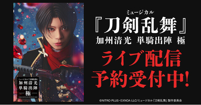 合同会社DMM.com(本社:東京都港区、PFカンパニーCEO:村中悠介、以下DMM)は、ミュージカル『刀剣乱舞』 加州清光 単騎出陣 極の【東京公演初日】2026年5月1日(金)18:00公演、2026年5月25日(月)13:00公演、【大千秋楽】2026年5月25日(月)18:00公演を「DMM TV」にてライブ配信いたします。本日4月13日(月)よりDMM TV特設サイトにてライブ配信の予約販売を開始しています。ライブ配信は公演終了後も楽しめる見逃し配信付きです。