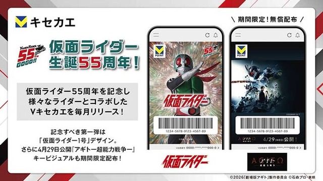 Vポイントマーケティング株式会社(本社:神奈川県横浜市、代表取締役 社長執行役員:廣田 精吾、以下「Vポイントマーケティング」)は、1971年より放送が開始された特撮テレビドラマシリーズ「仮面ライダーシリーズ」が生誕55周年を迎えたことを記念し、Vポイントアプリとのコラボレーション企画を実施いたします。