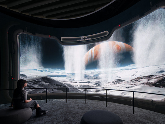 LED TOKYOは、宇宙船の窓を彷彿とさせる「大型曲面LEDパネル」を提供。平面では実現が難しい広い視野角と、宇宙の深淵を再現する高いコントラスト比を実現し、歪みを抑え、臨場感あふれる迫力で再現することで、来館者がまるで宇宙船に乗って惑星を巡っているかのような「非日常の没入体験」を視覚面から強力にサポートします。