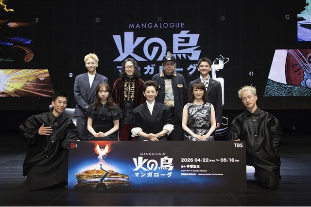 昨日行われた公開ゲネプロに、声優およびナビゲートを務めるマンガローガーと呼ばれる豪華キャスト陣が顔を揃えた。「マンガローグ:火の鳥」は、手塚治虫原作「火の鳥」のマンガに描かれた絵や言葉を起点に、観客全体で読み進めながらその世界に没入していくという新感覚の劇場型のマンガライブイマーシブステージ。