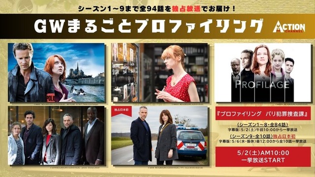 日本唯一の(*1)アクション海外ドラマ専門チャンネル「アクションチャンネル」(株式会社AXNエンタテインメント、本社:東京都渋谷区、代表取締役社長 野島 亮司)は、パリを舞台にプロファイラーと捜査チームが難事件に挑む大ヒット心理捜査ドラマ『プロファイリング パリ犯罪捜査課』の新シーズンを含むシーズン1~9まで全94話を一挙放送する特別企画「GWまるごとプロファイリング」を、2026年5月2日(土)より実施いたします。