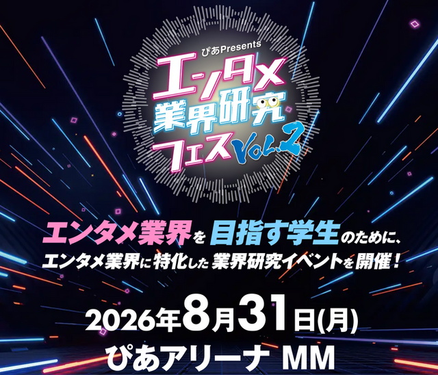 平素は大変お世話になっております。このたび、8 月 31 日(月)にぴあアリーナMMにて 『~ぴあ presents~ エンタメ業界研究フェス VOL.2』を開催する運びとなりましたので、 ご案内申し上げます。