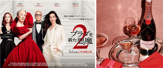 (左)『プラダを着た悪魔2』映画ポスター (右)モエ・エ・シャンドン ロゼ アンぺリアル