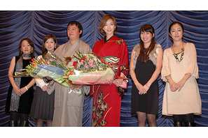 戦国の世を凛とした強さと美しさを持って駆け抜けた茶々。彼女の激動の生涯を描いた『茶々 天涯の貴妃(おんな)』の完成披露試写会が12月13日(木)に行われた。上映前の舞台挨拶に主演の和央ようかと橋本一監督が登壇。シネマカフェで展開中の特集「CHACHA美人入門」で読者モデルを務める「CHACHA美人」4人から和央さん、橋本監督への花束の贈呈が行われるなど会場は大きな盛り上がりを見せた。