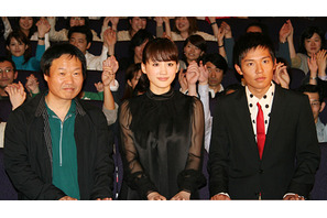恋人もいない、サエない大学生・ジローと、彼の前に突如現れたサイボーグの“彼女”。ときに微笑ましく、そして切ないふたりの愛を描いた『僕の彼女はサイボーグ』が5月31日(土)より公開される。4月15日(火)、本作の完成披露試写会が開催され、主演の小出恵介と綾瀬はるか、そして韓国から来日したクァク・ジェヨン監督による舞台挨拶が行われた。