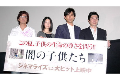 『血と骨』や『月はどっちに出ている』などの話題作の原作者である梁石日による、タイにおける子供たちの人身売買を題材にした同名小説を映画化した『闇の子供たち』。本作が8月2日(土)に公開を迎え、主演の江口洋介に宮崎あおい、佐藤浩市、そして阪本順治監督が舞台挨拶に登壇した。