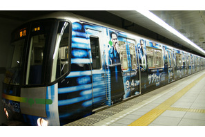 大江戸線でパニック!? 8月1日(土)より、都営大江戸線で、都営地下鉄としては史上初となる映画のビジュアルをフルラッピングした車両が登場し、話題を集めている。これは、ニューヨークの地下鉄を舞台にしたサスペンス・アクション『サブウェイ 123 激突』とのコラボレーションとして実現したもの。従来の大江戸線とは全く異なる青と黒を主体にした色調で、映画のタイトルと共に主演のデンゼル・ワシントンとジョン・トラヴォルタの姿が大きく描かれている。