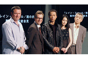 元特殊部隊所属の日系アメリカ人の殺し屋・レインの暗躍を描き、アメリカで第6作までが発表されている人気ハードボイルド小説「レイン」シリーズ。「雨の牙」(ヴィレッジブックス刊)という邦題で日本でも人気の本シリーズ第1作がこのたび『レインフォール/雨の牙』として映画化されることになった。5月22日(木)、本作の製作発表が行われ、マックス・マニックス監督を始め、主演の椎名桔平、長谷川京子、柄本明、そして撮影のために来日中のゲイリー・オールドマンが出席した。