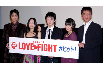 まきの・えりの「ラブファイト 聖母少女」(講談社文庫)を『ミッドナイト イーグル』の成島出監督が映画化。俳優の大沢たかおが初めて映画プロデュースに乗り出したことでも話題の『ラブファイト』が11月15日(土)に公開初日を迎えた。初回上映後の舞台挨拶に成島監督と大沢さんに、主演の林遣都と北乃きい、桜井幸子が登壇した。