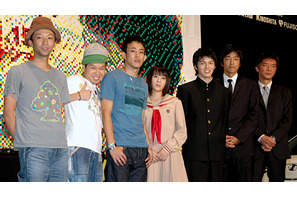 いじめられっ子の稔と幼なじみで喧嘩がめっぽう強い亜紀。不器用な2人の一筋縄ではいかない青春ラブストーリー『ラブファイト』が11月15日(土)より公開される。これに先駆け10月22日(水)、東京国際映画祭において本作のイベントが開催され、主演の林遣都と北乃きい、成島出監督に本作のプロデュースを手がけた大沢たかお、そして主題歌「希望の唄」を歌うファンキーモンキーベイビーズ(以下:FMB)が登場した。
