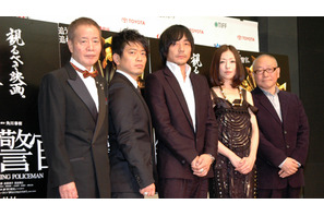 映画『笑う警官』が23日(金)、開催中の東京国際映画祭にて特別招待作品として上映され、これに先立ち角川春樹監督および大森南朋、松雪泰子、宮迫博之(雨上がり決死隊)らキャスト陣、そして原作者の佐々木譲が出席しての記者会見が行われた。