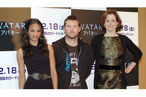昨夜、30分弱の完成前の特別映像が世界で初めて上映された『アバター』。一夜明けた10月18日(日)、サム・ワーシントン、シガニー・ウィーバー、ゾーイ・サルダナという3人の来日キャスト陣とプロデューサーのジョン・ランドが出席して記者会見が開かれた。いまだ多くが謎に包まれた本作について、当事者たちが口を開いた。