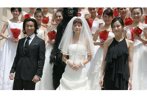 演技派俳優・岸谷五朗が、上野樹里と木村佳乃の2大人気女優を主演に迎え、監督デビューを果たした『キラー・ヴァージンロード』が9月12日(土)に公開される。上野さん扮する“結婚したい女”と木村さん扮する“死にたい女”の奇妙な逃亡劇を笑いたっぷりに描いた本作。7月27日(月)、本作の完成会見がセントグレース大聖堂にて行われ、岸谷監督に上野さん、木村さんが登場し、劇中に因んで上野さんの純白のウェディングドレス姿が披露された。