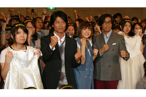 映画『キラー・ヴァージンロード』の初日舞台挨拶が9月12日(土)、東京・TOHOシネマズ 六本木ヒルズにて行われ、初監督となった岸谷五朗とW主演の上野樹里と木村佳乃、共演の寺脇康文、小出恵介らがコミカルなトークを展開した。