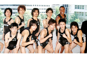 直木賞作家・三浦しをんによる人気小説を原作に、陸上未経験者が大半を占める寄せ集めの大学陸上部が、学生ランナーの夢の舞台である箱根駅伝出場を目指すというドラマを描いた青春映画『風が強く吹いている』。10月31日(土)に公開を迎える本作の完成報告記者会見が7月15日(水)に、箱根駅伝のスタートおよび最終ゴール地点である東京・大手町の一角で行われ、主演の小出恵介を始め、林遣都、中村優一、川村陽介、斉藤慶太、斉藤祥太、ダンテ・カーヴァー、橋本淳、森廉、内野謙太ら10名の寛政大学陸上部員と大森寿美男監督が出席した。