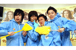 アカデミー賞2部門を受賞した『リトル・ミス・サンシャイン』のプロデュースチームが再び集結し、全米で大ヒットを記録した家族ドラマ『サンシャイン・クリーニング』の公開を目前にして、スペシャル試写会イベントが7月2日(木)に行われた。サプライズゲストに映画の応援隊長として吉本興業の人気芸人、平成ノブシコブシ(徳井健太・吉村崇)とはんにゃ(川島章良・金田哲)が映画のストーリーにある清掃員のコスチュームを身にまとい、試写会場を掃除しに登壇。映画に絡めた面白トークを繰り広げ、立ち見が出るほどの観客でいっぱいの劇場は歓声と笑い声に沸いた。