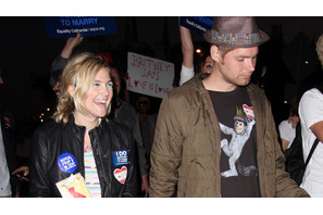 ドリュー・バリモアが26日、彼女の映画製作会社「Flower Films」の副社長を務めるクリス・ミラーと一緒に、カリフォルニア州における同性婚の自由を求める集会に参加した。