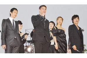 それぞれに“痛み”を抱える3人の男たちの彷徨を描いたサスペンスであり、ジョシュ・ハートネット、イ・ビョンホン、そして木村拓哉の共演が大きな話題を呼んでいる『アイ・カム・ウィズ・ザ・レイン』。6月6日(土)にどこよりも早く、日本で公開されるが、これに先駆け5月27日(水)、ここ日本でワールド・プレミアが開催され、ジョシュ、ビョンホン、木村さんに加え、ヒロインを演じたトラン・ヌー・イェン・ケー、そしてトラン・アン・ユン監督が来場し会場は大きな盛り上がりを見せた。