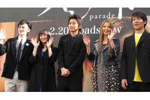 第60回ベルリン国際映画祭の国際映画批評家連盟賞を受賞した映画『パレード』の初日舞台挨拶が2月20日(土)、シネクイント渋谷で行われ、主演の藤原竜也、小出恵介、香里奈らが受賞の喜びを語った。