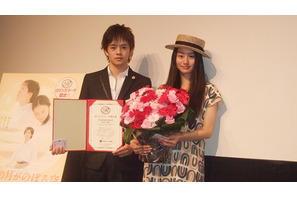 先日公開された『半分の月がのぼる空』が日本ロマンチスト協会より「本年度最高のロマンティック・ムービー」に認定され、主演の池松壮亮と忽那汐里が4月19日(月)、認定証授与式に出席した。