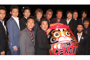映画『十三人の刺客』の初日舞台挨拶が9月25日(土)、東京・有楽町のTOHOシネマズ日劇2で行われ、主演の役所広司をはじめ、共演の市村正親、山田孝之ら男性キャスト12人と三池崇史監督の計13人が顔を揃えた。