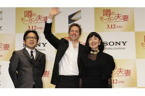 映画『噂のモーガン夫妻』を携えて来日中のヒュー・グラントが、3月1日(月)に都内で開催された女性限定の本作特別試写会に駆けつけた。上映前にはヒューの舞台挨拶と共に、会場に詰めかけた200人のファンを対象に、映画の内容に因んだ“男と女”や“浮気”にまつわるアンケートがスイッチ式で実施されたが、その結果に“ラブコメの帝王”も真っ青…? さらに、スペシャルゲストとして鳩山幸総理夫人も来場し会場は大きな盛り上がりを見せた。