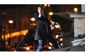 トム・クルーズとキャメロン・ディアス共演の注目アクション・コメディ『Knight & Day』(原題/『Wichita』改題)。10月の米ボストンでのクランクインを皮切りに、世界各地で激しいアクション撮影が行われている本作だが、オーストリア・ザルツブルクでは、トムは約120メートルもの高さのあるホテルの屋根でアクション全開! 47歳という年齢を全く感じさせないアクションスターぶりを見せた。