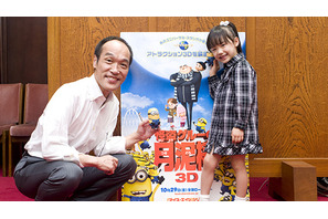 連続ドラマ「Mother」(日本テレビ)や映画『告白』に出演し、“天才子役”として注目を集めている芦田愛菜が、日本語吹き替え版の声優を務めるアニメーション映画『怪盗グルーの月泥棒 3D』のキャンペーンの一環で、口蹄疫などの被害からの復興を応援すべく宮崎県の東国原英夫知事を“表敬訪問”。つい先日、2期目の宮崎県知事選への不出馬を表明した、渦中の東国原知事と対談を行った。