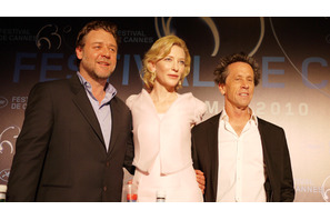 第63回カンヌ国際映画祭が5月12日(現地時間)、南フランスのリゾート地カンヌで開幕した。今年のオープニング作品は、リドリー・スコット監督のエンターテイメント巨編『ロビン・フッド』。スコットの母国イギリスが生んだ伝説の英雄をラッセル・クロウが演じる。レッドカーペットに先立ち行われた公式記者会見には、クロウ、ヒロインのマリアンを演じたケイト・ブランシェット、プロデューサーのブライアン・グレイザーらが出席。スコットは膝の手術を受けたばかりで、ドクター・ストップがかかり、欠席となってしまい「この栄えある場に出席できず大変残念ですが、ラッセルたちにこの映画を託します」とメッセージを発表した。