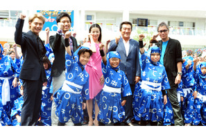 漫画、そしてTVアニメとして長年愛されてきた作品を実写化した『忍たま乱太郎』が7月23日(土)、公開初日を迎え、加藤清史郎、林遼威、木村風太、寺島進、三浦貴大、石垣佑磨、杏、松方弘樹、三池崇史監督が舞台挨拶を行った。この日はサプライズで松方さんの69回目の誕生日の祝福に加え、なでしこJAPANの安藤梢も映画公開を祝って駆けつけるなど盛りだくさんのイベントとなった。
