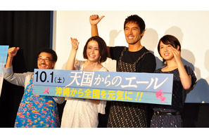 まもなく公開となる『天国からのエール』試写会が9月20日(火)に都内で行われ、阿部寛とミムラ、桜庭ななみが舞台挨拶を行った。ゲストとして映画の舞台となった沖縄出身でボクシングの元世界チャンピオンである具志堅用高も出席し、沖縄の思い出話に花を咲かせた。