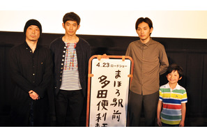 三浦しをんの人気小説を映画化した『まほろ駅前多田便利軒』の完成披露試写会が4月7日(木)に開催され、瑛太、松田龍平、横山幸汰、大森立嗣監督が舞台挨拶に立った。