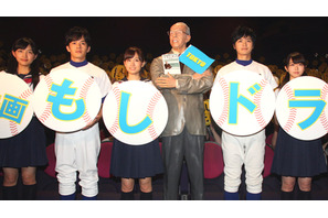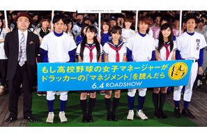 “もしドラ”の愛称で親しまれ、現在までに250万部を発行するベストセラーを映画化した『もし高校野球の女子マネージャーがドラッカーの『マネジメント』を読んだら〜』が6月4日(土)、全国で封切られ、映画初主演を果たした前田敦子(AKB48)をはじめ、瀬戸康史、峯岸みなみ(AKB48)、池松壮亮、川口春奈、メガホンを取った田中誠監督が東京・TOHOシネマズ 六本木ヒルズで初日舞台挨拶を行った。