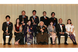 先月発表された「2011年 第85回キネマ旬報ベスト・テン」の表彰式が2月4日(土)、都内で開催され、主演女優賞を受賞した永作博美、助演女優賞の小池栄子らが出席した。米アカデミー賞よりも長い歴史をもち、いまも国内外で高い注目を集める同賞。今回の表彰式には、自ら“最後の作品”と公言する『一枚のハガキ』が日本映画作品賞に輝いた新藤兼人監督も来場し、永作さん、小池さんら受賞者たちがスタンディング・オベーションで最大級の敬意を表した。