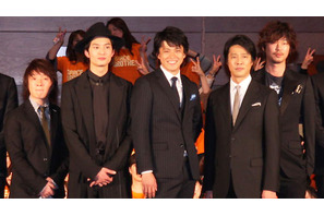 累計750万部を突破し、現在も「モーニング」(講談社刊)に連載されている小山宙哉の同名人気コミックを実写映画化した『宇宙兄弟』のジャパンプレミアが3月28日(水)、東京国際フォーラムで開催され、主演を務める小栗旬と岡田将生、共演の堤真一、濱田岳、新井浩文、井上芳雄、塩見三省、森義隆監督が舞台挨拶を行った。