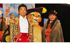 大人気シリーズ『シュレック』から飛び出した“長ぐつをはいたネコ”ことプスを主人公に迎えた映画『長ぐつをはいたネコ』が3月17日(土)、全国で封切られ、日本語吹き替え版の声優を務める竹中直人と勝俣州和が東京・新宿ピカデリーで初日舞台挨拶を行った。