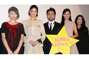 記憶を失った“三股男”のドタバタ恋愛劇を描いた『指輪をはめたい』が11月19日(土)、全国で公開初日を迎え、主演の山田孝之を始め、共演する小西真奈美、真木よう子、池脇千鶴、二階堂ふみ、そしてメガホンをとった岩田ユキ監督が東京・新宿バルト9で初日舞台挨拶を行った。