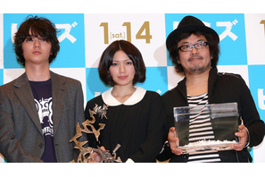 古谷実の漫画を映画化した『ヒミズ』が1月14日(土)に公開初日を迎え、主演の染谷将太、二階堂ふみ、園子温監督が舞台挨拶に登壇した。