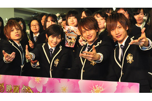 葉鳥ビスコの人気少女コミックを原作に、連続ドラマも放送された映画『桜蘭高校ホスト部』が3月17日(土)、ついに公開初日を迎えた。東京・新宿ピカデリーで主演の川口春奈、山本裕典ら主要キャストが劇中の桜蘭高校の制服に身を包み、初日舞台挨拶を実施。大人気を博したホスト部部員たちが勢揃いするのは、今回が最後にある可能性もあり「これが終わったら会えなくなるな、寂しいなという気持ちも」(川口さん)、「こうやってみんなと会う機会もそうそうなくなるのかな…」(山本さん)と複雑な心境を打ち明けた。