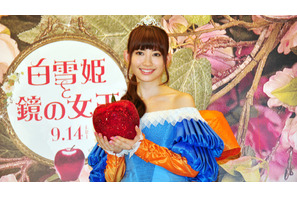 「AKB48」の小嶋陽菜が、映画『白雪姫と鏡の女王』のCMオピニオンに就任。8月29日(水)にCMナレーションの収録に臨み、劇中で実際に使用された青いドレスを着用して報道陣の前に姿を見せた。