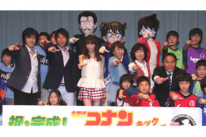 1994年より「週刊少年サンデー」(小学館)にて連載中の大人気コミックスの映画化で、1997年より毎年公開されゴールデンウィーク映画として親しまれている、劇場版『名探偵コナン』シリーズの第15作目にして最新作『名探偵コナン 11人目のストライカー』が4月14日(土)より劇場公開される。シリーズ史上初の“サッカー”が題材となることにちなんで、このほど本作が来年20シーズン目を迎えるJリーグとのタッグが決定! 日本代表選手が本人役で声優として出演することが明らかとなった。