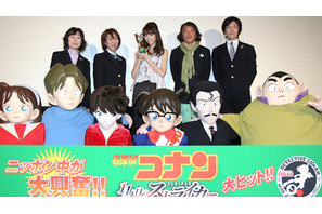 劇場版アニメ『名探偵コナン 11人目のストライカー』が4月14日(土)に公開。東京・有楽町のTOHOシネマズ 有楽座で行われた舞台挨拶に、TV版でも声優を務めている高山みなみ、山崎和佳奈、小山力也、本作にゲスト声優として出演している桐谷美玲、そして物語にちなんでJリーグを代表して元プロサッカー選手の北澤豪が登壇した。