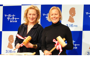 『マーガレット・サッチャー 鉄の女の涙』で自身2度目のアカデミー賞主演女優賞を獲得し、現在来日中のメリル・ストリープが3月7日(水)に都内で開催された記者会見にフィリダ・ロイド監督と共に出席した。