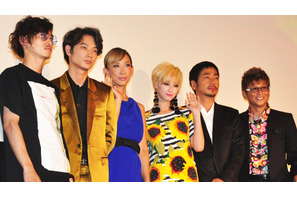 沢尻エリカの5年ぶりの主演映画として注目を浴びる『ヘルタースケルター』が7月14日(土)に公開を迎え、都内劇場で行われた舞台挨拶で、これまで体調不良によりプロモーション活動を欠席していた沢尻さんが復帰。共演の大森南朋、綾野剛、窪塚洋介、哀川翔、蜷川実花監督と共に登壇し、ファンへの感謝の気持ちや作品に込めた思いを語った。