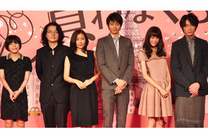 全編フランス・パリで撮影されたこの秋話題のラブストーリー『新しい靴を買わなくちゃ』が10月6日(土)、全国で封切られ、主演を務める中山美穂と向井理、共演する桐谷美玲、綾野剛、メガホンもとった脚本家の北川悦史子とプロデューサーの岩井俊二が東京・有楽町の丸の内TOEIで初日舞台挨拶を行った。中山さんは劇場に駆けつけたファンを前に「みなさんのリアルな笑顔を見られて、これ以上嬉しいことはない」と感無量。一方、向井さんも「とても思い入れが深い作品です」と誇らしげだった。