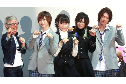 人気漫画家・新條まゆの大ヒットコミックを映画化した『愛を歌うより俺に溺れろ!』が8月25日(土)に封切られ、主演のカラム(大国男児)と大野いと、TAKUYA、AKIRAの出演陣に加え、福山桜子監督による舞台挨拶が角川シネマ新宿にて行われた。